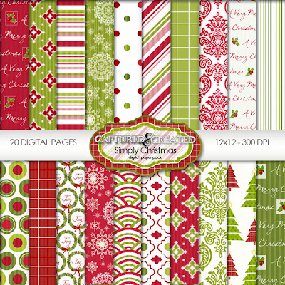 Yep, I've been singing and humming Christmas songs while everywhere I look it's Halloween Decorations and Pumpkins. Been wanting to created a new fresh and fun digital Christmas paper pack for awhile. So over the weekend besides grand kids football and soccer games I came up with this set that I call Simply Christmas. Now on to creating a Coordinating Element Set...